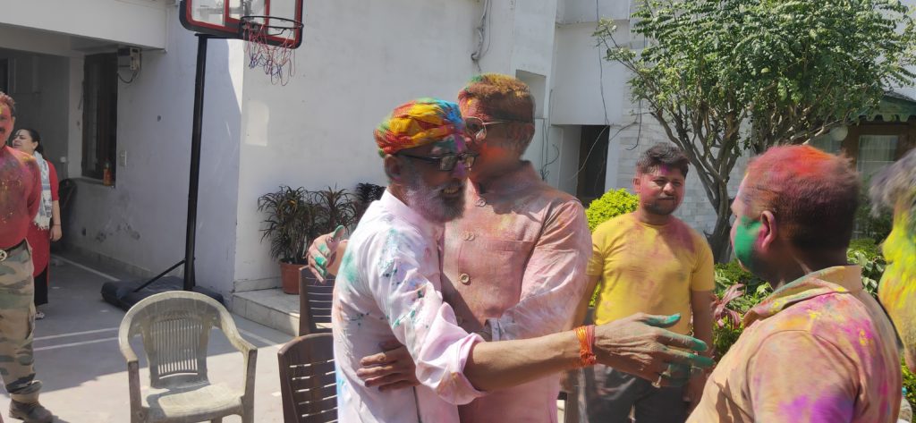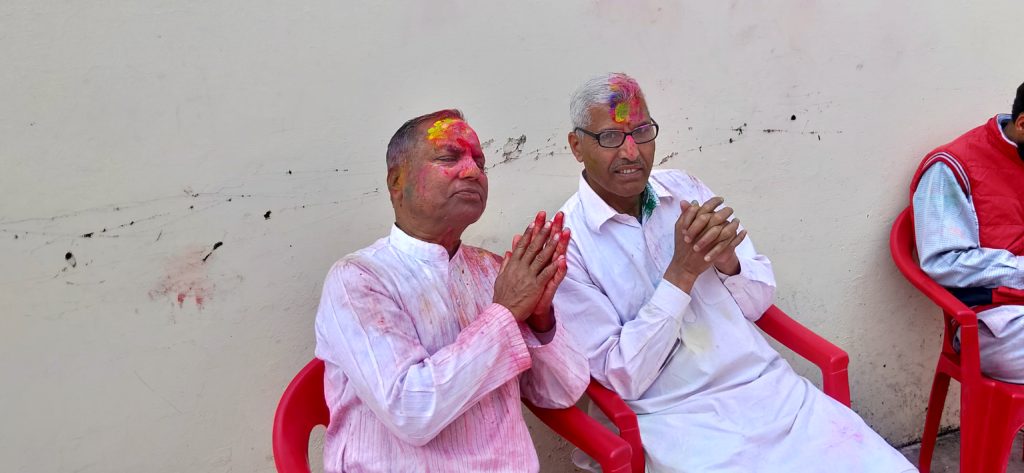 एक दूसरे के गले मिलकर होली की बधाइयां देते नजर आ रहे हैं दूसरी तरफ नेता प्रतिपक्ष इंदिरा हरदेश जी के निवास पर सभी कांग्रेसी नेता एक दूसरे को रंग लगाकर होली की बधाई देते नजर आ रहे हैं