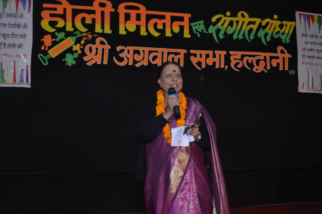 श्रीरामलीला मैदान हलद्वानी में होली की पूर्व संध्या पर श्री अग्रवाल सभा हल्द्धानी के द्वारा 27 वा होली मिलन एवं संगीत संध्या कार्यक्रम आयोजित किया गया
