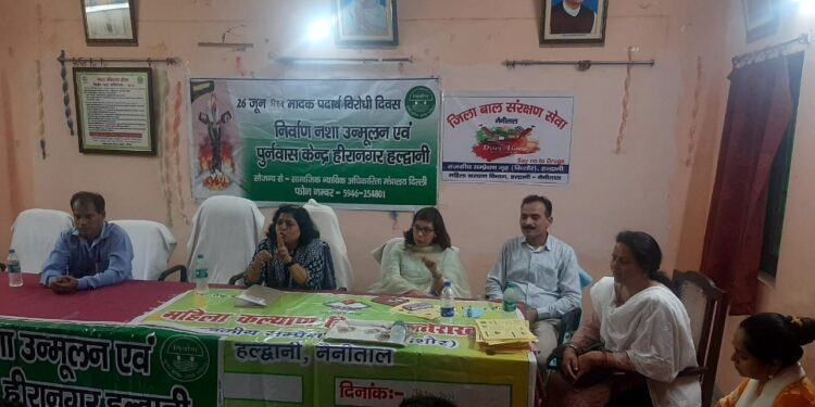 हल्द्वानी में आज विश्व मादक पदार्थ विरोधी दिवस के उपलक्ष में राजकीय संप्रेक्षण ग्रह किशोर हल्द्वानी में निर्माण संस्था द्वारा नशे के ख़िलाफ़ एक जागरूकता कार्यक्रम आयोजित किया जिसमें किशोरों को नशे के नुक़सान के सम्बंध में बताया गया तथा कैसे स्वयं को नशे से दूर रख सकते हैं इसके सम्बंध में अवगत कराया । नशे से दूर रहने में योग तथा ध्यान का महत्व भी समझाया गया । किशोरों को लाफ़्टर थेरपी के ज़रिए भी मन को डाइवर्ट करना बताया गया । अंत में सभी ने नशे का सेवन ना करने का संकल्प लिया। इस मौक़े पर डॉक्टर रश्मि पंत निर्माण संस्था , व्योमा जैन प्रोबेशन अधिकारी, श्री विनोद डालकोटि अधीक्षक राजकीय संप्रेक्षण गृह किशोर , श्रीमती कंचन भंडारी , सदस्य बाल कल्याण समिति तथा श्रीमती पुष्पा कांडपाल सदस्य बाल कल्याण समिति उपस्थित थे।