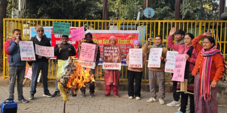 प्रगतिशील महिला एकता केंद्र (प्रमएके)और क्रांतिकारी लोक अधिकार संगठन (क्रालोस)ने संयुक्त रूप से अंकिता भंडारी हत्या मामले में आरोपी वीआईपी पर आपराधिक धाराओं में मुकदमा दर्ज करने और कठोर कानूनी कार्यवाही किए जाने को लेकर बुद्ध पार्क तिकोनिया हल्द्वानी में पुतला दहन कर उसके उपरांत राज्यपाल महोदय उत्तराखंड, देहरादून के नाम सिटी मजिस्ट्रेट हल्द्वानी के माध्यम से ज्ञापन दिया।