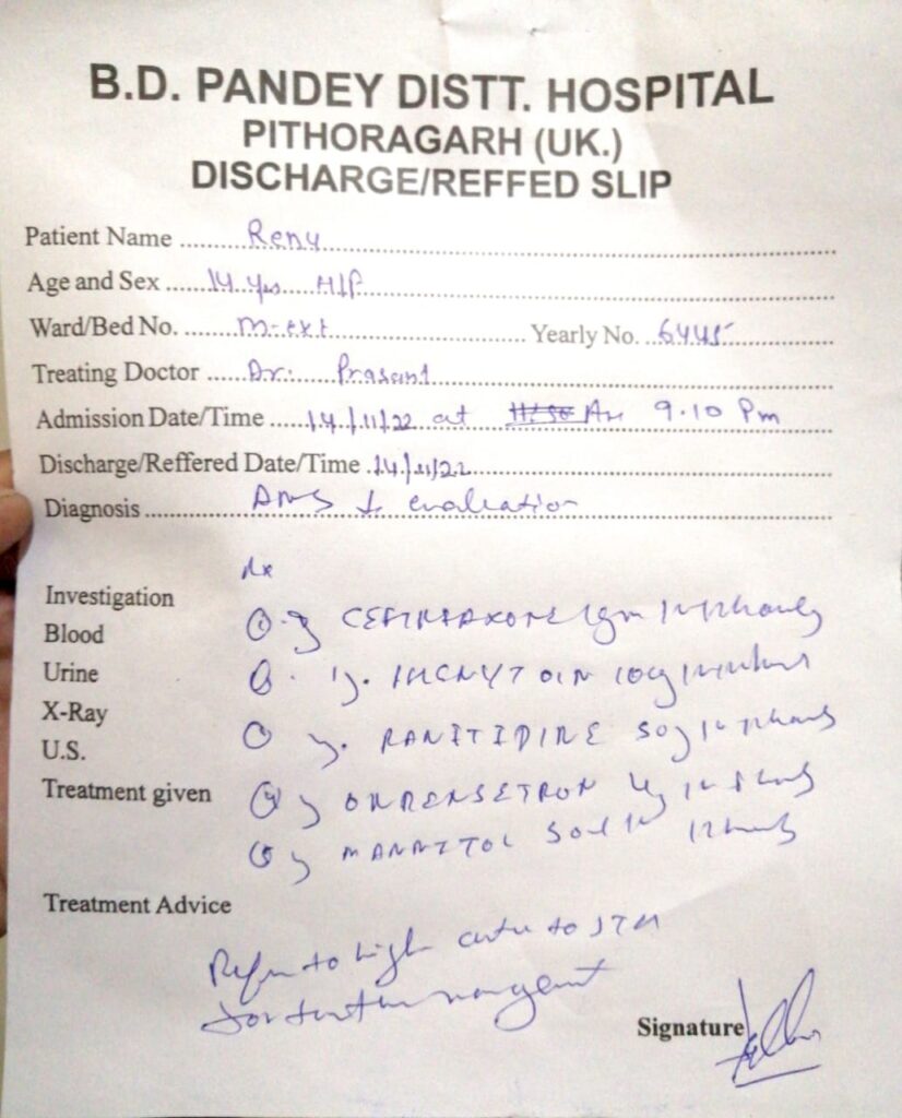 नहीं रही 14 साल की अनाथ रेनू पानू , हल्द्वानी के डॉक्टर सुशीला तिवारी अस्पताल मे हुआ निधन…….
