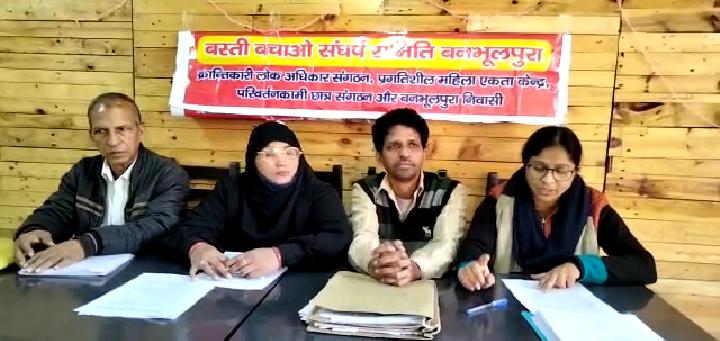 रेलवे की जमीन पर अतिक्रमण के मामले में बस्ती बचाओ संघर्ष समिति, बनभूलपुरा के संयोजक टीकाराम पांडे ने सोमवार को प्रेस वार्ता में कहा कि गफूर बस्ती, ढोलक बस्ती के सैकड़ों परिवारों को भूमि आवंटित कर बसाने को लेकर शासन स्तर पर कार्यवाही वर्ष 2010 से लटकी है, इसके लिए शासन और प्रशासन जिम्मेदार है। उन्होंने कहा कि ऐसे समय जब सर्दी और अधिक बढ़नी है और कोरोना महामारी का खतरा मंडरा है, शासन-प्रशासन को एक बड़ी आबादी को बसाने के इंतजाम करने चाहिए।