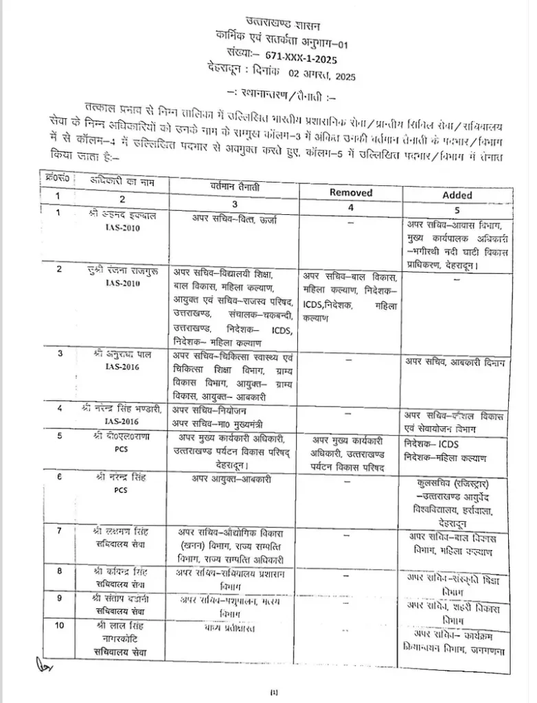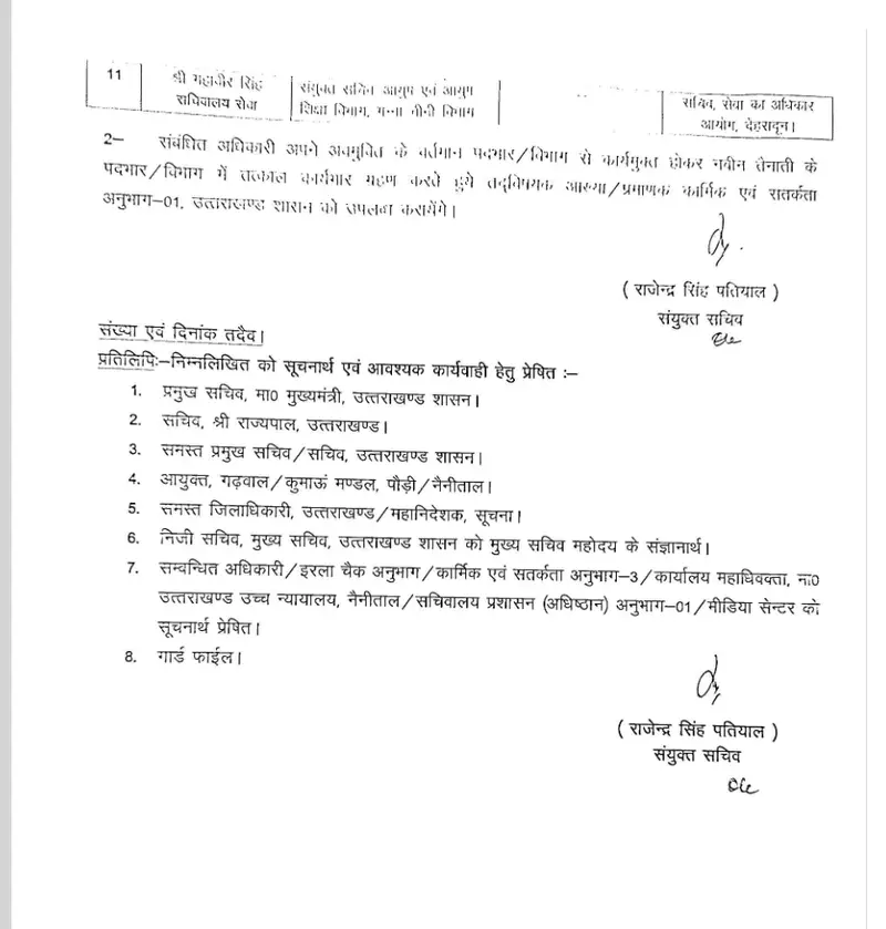 उत्तराखंड शासन ने 4 IAS और दो पीसीएस समेत 11 अधिकारियों के दायित्वों में किया फेरबदल